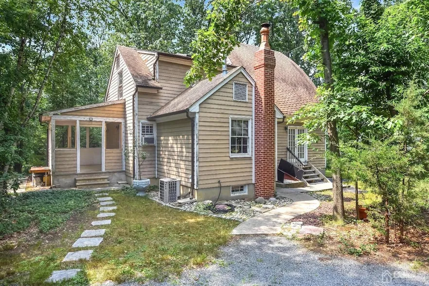 This is it! The OBVIOUS CHOICE for tranquility and peaceful surroundings in super desirable Monroe Township ( Middlesex County). No Expense was spared in the construction of this unique property. Set on a hilltop, this secluded home features a MASSIVE primary bedroom with vaulted ceilings, a second upstairs bedroom and adjacent full bath room with skylight. The entry level features a LARGE country kitchen, oversized living room with a BEAUTIFUL Brick hearth and wood-burning stove. Rounding out the entry level is a third bedroom that is a PERFECT flex space and can be your home office and a second full bathroom. The basement offers unlimited possibilities with high ceilings, BILCO doors to the back yard. A second wood-burning stove, mechanicals and laundry. The outdoor space is great!! A LARGE outdoor shed that fits a car and a covered carport. There is an open air porch off the kitchen that can easily be enclosed for multi season enjoyment. The property is wooded and vast.. Peaceful and private. There is ample parking for multiple vehicles and can easily handle a tradesman's small fleet. Seller is including a 1 Year Cinch HOME WARRANTY!! Make your appointment today! Primary Bedroom and living room photo's digitally staged.
