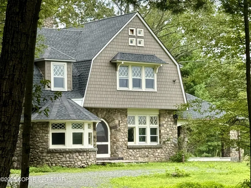She's baaaackk... Stonecrop has returned to market at a new price. If you missed out before, this is your second chance at a timeless mountaintop estate on 10+ private acres with sweeping views of the Delaware Water Gap and Camelback. Built in 1906 with enduring stonework and craftsmanship, the 3,000+/- sq ft main house offers original built-ins, four fireplaces, front and rear stairs, and a large wood-beamed covered porch that frames the views. A detached 560+/- sq ft guest cottage with its own bath adds flexible space for guests, studio, or 'granny pod.' Significant updates include roofs and mechanicals, an upgraded boiler, electrical improvements, and more. Interiors are ready for your vision. Extra second-floor room is ideal for a future laundry/second bath; walk-up attic offers additional possibilities. Rare estate-size acreage delivers privacy with room to expand or explore subdivision (verify with township). Minutes to major routes and year-round attractions, yet a world away. Not a fixer-an exceptional canvas for your forever home, weekend retreat, or multi-generational living. Lots of seasonal photos available - gorgeous any time of year! Back on market due to Buyer's financing failing after a low appraisal. There are no comparable recent sales for a home this special and unique so the seller prefers a cash-strong buyer ready to accept as-is and invest in the vision. Schedule your tour today