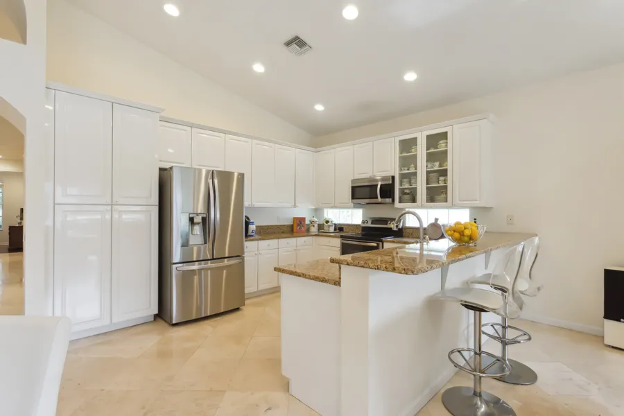Step into this rare Madrid model with a newly upgraded contemporary kitchen and a fresh Nroof. This home in Valencia Lakes, an active-adult community, is designed for those who cherish community and comfort. The layout is tailored for entertaining, merging generous indoor spaces with extensive outdoor living areas, perfect for leisure and gatherings. Nestled in Boynton Beach, this home is part of a vibrant community featuring a renovated clubhouse, multiple pools, and courts for tennis and pickleball. Ideal for retirees and seasonal residents, the setting offers lush landscapes and like-minded neighbors, making every day a delightful experience. Embrace a lifestyle where luxury meets convenience in this charming home. Nothing compares! Staged by Ashley Rose with a touch of Feng Shui.
