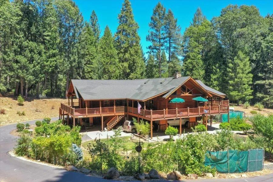 Stunning one-of-a kind log home & DREAM MOUNTAIN RETREAT on 5 secluded acres. Step inside and be WOWED by the bright & airy open concept great room w/ vaulted ceilings, exposed wood beams, large windows and skylights. The roomy living area boasts an efficient wood burning stove for that ski lodge atmosphere. Move to the kitchen and you'll find stainless steel appliances and a large custom-built butcher block island with plenty of storage space. The adjacent dining area is perfect for hosting dinner parties with friends and family. All main living is on one level and features a huge master Bed. walk-in closet and an en-suite handicapped friendly bathroom w/ walk in shower. Two additional bedrooms, guest bath w/soaking tub, and a combo office/laundry room. Don't forget to step outside to the expansive wrap around deck and enjoy a hot soak in the spa. Downstairs, you'll find an additional half bath & 2 large bonus rooms accessing the outside patio area and yard. The home also includes a 2 car attached garage, a 2 car detached garage, additional covered parking spaces, Plus a handicapped friendly ramp, and an ELEVATOR. NEW HIGH SPEED FIBEROPTIC INTERNET Come see this amazing tranquil setting for yourself. Purchase price is AS is for this price.
