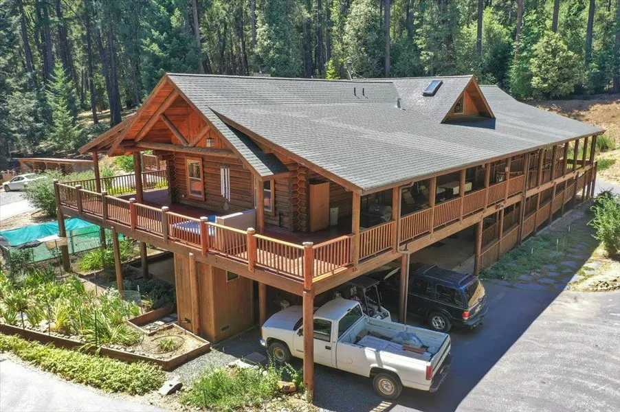 Unique log home & MOUNTAIN DREAM RETREAT on 5 secluded acres. Step in & be amazed by open great room, vaulted ceilings, wood beams, large windows. Cozy wood stove adds ski lodge vibe. Stainless steel appliances, custom butcher block island in kitchen. Spacious dining area for entertaining. Main level living: master Bed, walk-in closet, handicapped-friendly en-suite. Two more bedrooms, guest bath, office/laundry combo. Wrap-around deck, spa. Downstairs: half bath, 2 bonus rooms, patio access. 2-car attached & detached garages, covered parking, ramp, ELEVATOR. HIGH SPEED INTERNET. Serene setting. Lower Level perfect for guests with private entrance. Large wheel chair friendly ramp from exterior to main living. New ROOF in process!
