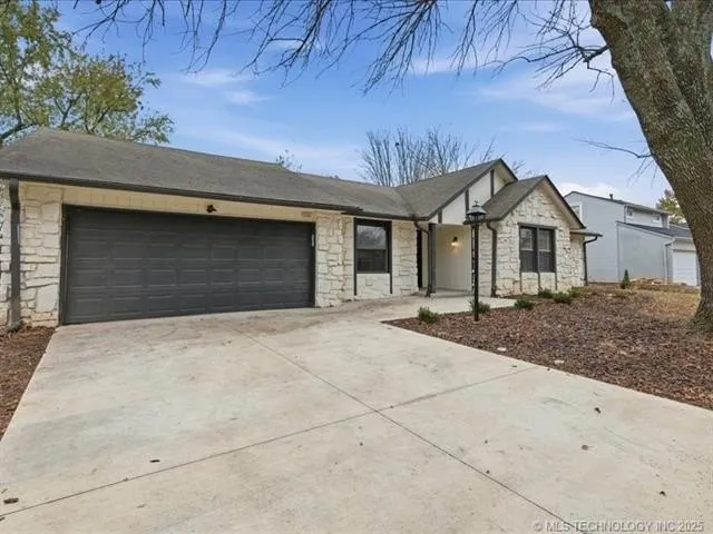 Beautifully updated single-story home in Bixby featuring fresh exterior and interior paint, luxury vinyl flooring, new carpet in the bedrooms, and updated kitchen appliances and hardware. Both bathrooms have been refreshed with new vanities, tile, and toilets. Hall bath has new floor to ceiling tile surround and primary bathroom has walk in tile shower with glass doors and updated hardware. The home also includes new lighting and fans throughout, and an enclosed space creating a fourth bedroom with a closet?perfect for an office as well. Backing to a park with trails, the home offers a peaceful setting, with a kitchen window overlooking the lovely yard, granite counters, stainless appliances, and an eat-in dining area. The living room features a vaulted ceiling, vinyl flooring, a cozy fireplace, and access to the covered patio and backyard. Three additional bedrooms complete the home, with the primary bedroom offering a private en suite bathroom. A new driveway and front porch enhance the updated curb appeal. Move-in ready and conveniently located near dining, shopping, and more!