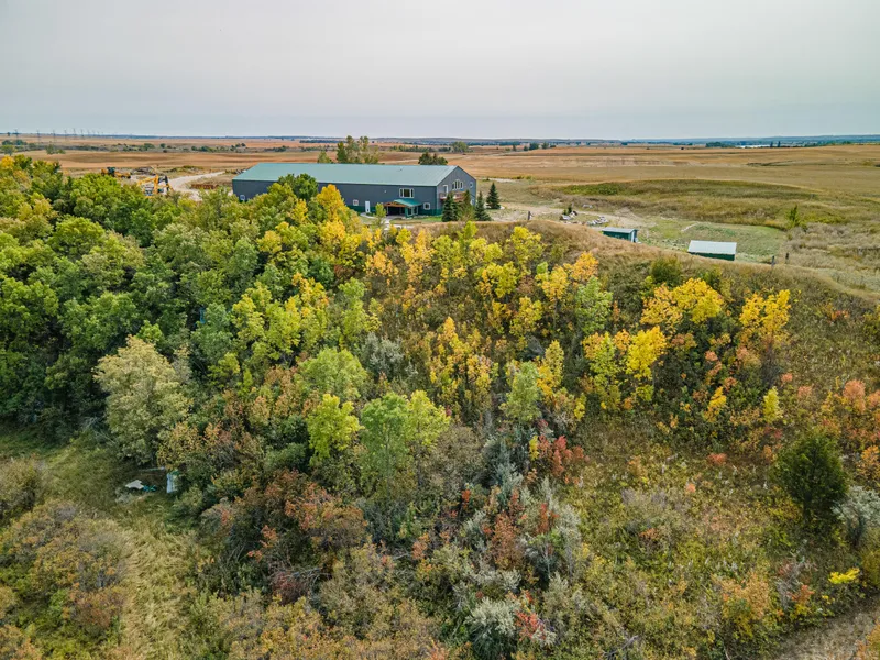 IF YOU'RE ON THE HUNT FOR A REMARKABLE RURAL PROPERTY YOU WON'T WANT TO MISS THIS! 40 acre parcel is located adjacent to Painted Woods Golf Course, 25 minutes from Bismarck and 7 minutes from Washburn. There are 2 plats, plat A is 14.24 acres & includes the home and shops. Plat B is 24.76 acres. The Painted Woods Creek meanders through the rolling hills & mature tree groves making it a HUNTING & FISHING PARADISE! The living quarters are located on 2 levels (totaling 3,968 sq ft) & has stained concrete floors with RADIANT HEAT on the main. There is a dramatic 2 story entry that leads into a open living, dining & kitchen with alder cabinets, walk in pantry and 2 tiered island. There are sliding doors leading to a covered patio ( with hot tub hookups) & fenced yard with a firepit. The master bedroom, full master bath, 2nd bedroom, bath & laundry are also on the main level. An open stairway with impressive log railing leads to the upper level. This level has a huge great room, wet bar and cedar planked ceilings. Sliding doors lead to a deck with breathtaking views! You'll find a 3rd bath on this level & It's possible to have 3 more bedrooms with little effort. The shop portion totals over 7000 sq ft, has 16 ft sidewalls & is divided into 3 bays, each with their own overhead door. The end bay has radiant heat & garage doors on 2 sides. This bay also has 1/2 bath & a loft office.