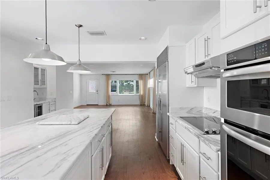 A rare blend of classic charm and modern refinement, this 3-bedroom, 2-bath home has been meticulously redesigned to deliver effortless luxury and coastal comfort. Step inside and you’re greeted by gleaming hardwood floors, a gourmet marble kitchen with Sub-Zero refrigeration, and custom cabinetry that speaks to timeless craftsmanship. The adjoining wet bar—also finished in marble—is perfect for entertaining with sophistication and ease.