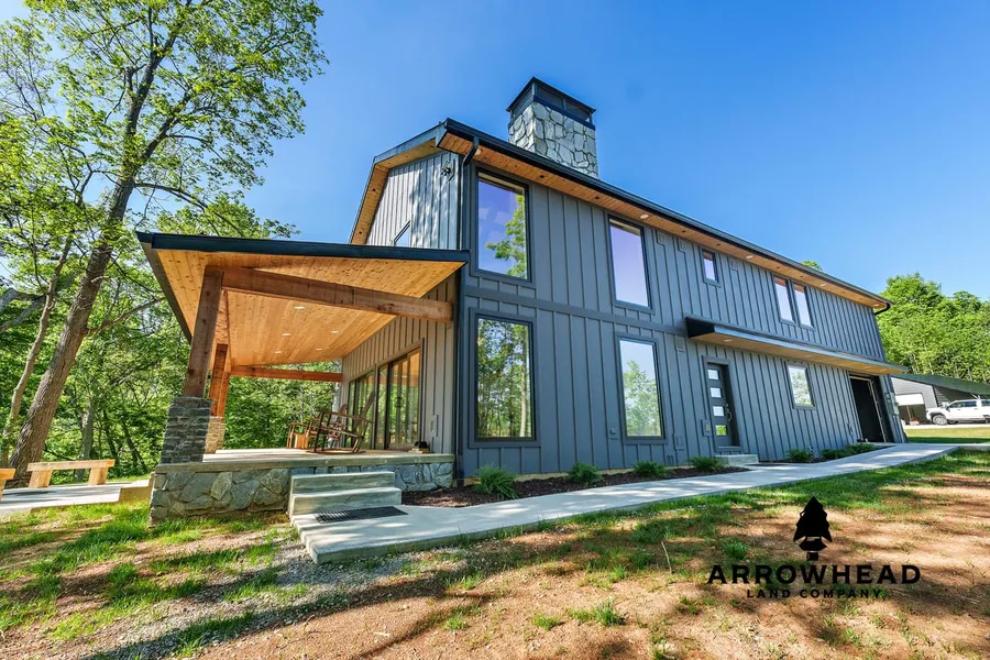 The stunning lodge consists of custom finishes, from exposed beams to custom Amish-built cabinets and vanities with quartz countertops, showcasing precise craftsmanship throughout. The 10 European white oak floors add an upscale charm and cozy feeling. Gather around the quartz stone fireplace in the living area, creating a warm and inviting atmosphere on cool evenings. Experience the peacefulness of outdoor living with a fire pit overlooking the river, perfect for unwinding and enjoying the beauty of what Lewis County has to offer! While you will experience the peacefulness of a rural setting, the lodge also is equipped with modern amenities such as a 3000-gallon cistern with an ultraviolet filtration system, underground electric, and Starlink internet connectivity. A hidden bookshelf door entrance leads into two bonus rooms, adding a unique touch to the home’s design. In addition to the lodge, the property features an attached 2-car garage with automatic doors, plus a 30x30 detached garage with a concrete floor. Sliding glass doors and oversized windows maximize the river view and natural light, while dual laundry rooms upstairs and downstairs offer added convenience. The professionally built driveway with a culvert system ensures easy access to the property.