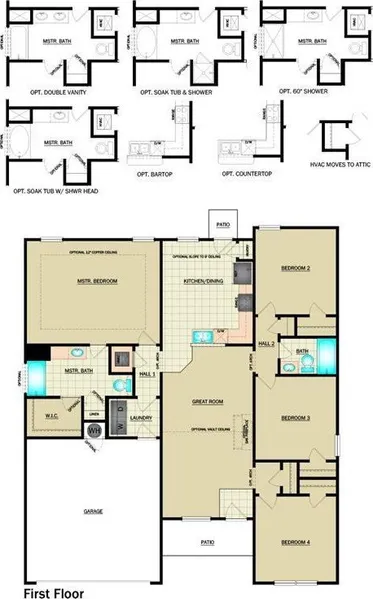The KINSLEY floor plan is a single-story home offering ample space to live and grow, with three secondary bedrooms and a luxurious owner’s suite featuring a full bathroom and walk-in closet. An open-concept floorplan blends the kitchen, living and dining areas, with a nearby patio for simple indoor-outdoor living. Prices, dimensions and features may vary and are subject to change. Photos are for illustrative purposes only. Home is currently under construction with anticipated completion in January.