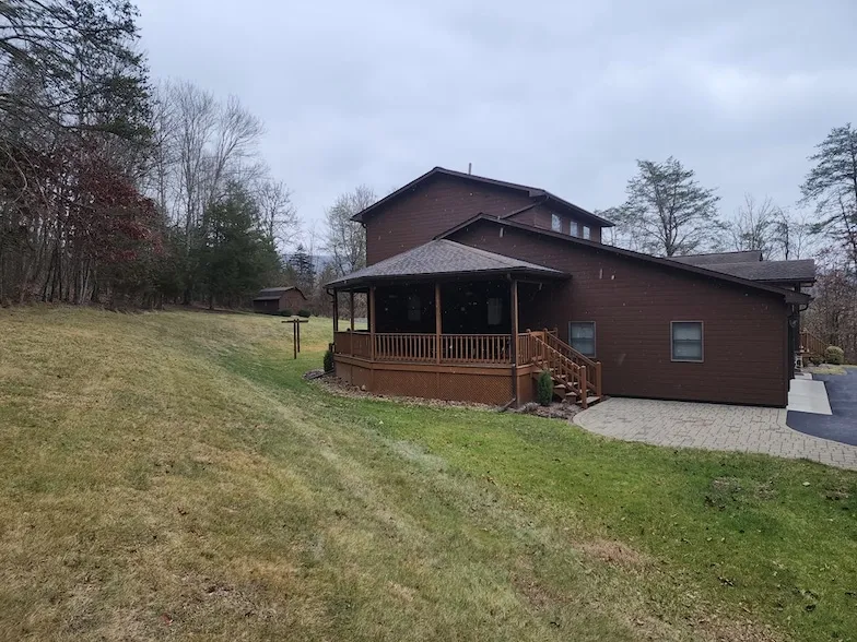 Conveniently located between Huntingdon & State College on 3 acres. 3 bdrm, 4 bath home w/2 car att & 2 1/2 car detached garage w/electric & heat. Living room & great room have T&G cathedral ceilings, propane fireplace and hardwood floors in dining room. Kitchen w/quartz countertops, center island, Wolfe range, under cabinet lighting & all appliances. 1st floor bedroom w/bath & laundry room. Lower level has finished family room w/mini bar & 1/2 bath, theatre room and exercise room along with utility room w/workbench. Enjoy the hot tub on the deck or sit on the covered porch. Shed, raised garden beds & paved drive.