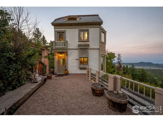 Pictures coming.... stay tuned.Endless views across the foothills, over Denver and beyond. This 3-level home is truly special- envision French Chateau meets the Colorado Mountains. The upper level is the quaint master suite with 2 separated sink areas, tub/shower, large walk-in closet and vaulted master ceilings with original wood beams from the property. Main level is the kitchen and living room with floor to ceiling windows, 10ft ceilings with incredible 100-year-old beams. The garden level is also a walk out which can be used as second bedroom with full bath and large walk in closet or as a family room and bonus space. The walk out garden level features a circular flagstone patio and gazebo with hot tub. This 1.5-acre property is truly one of a kind, with a ton of potential for expansion.