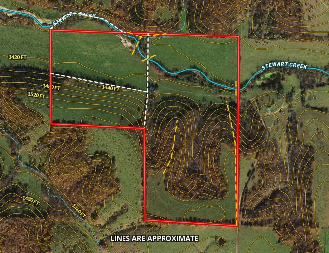 With approximately 75% of the land being pasture/hay ground, including 40 acres of bottom ground, this property is an excellent investment for anyone looking to start a farm. Additionally, Stewart Creek runs through the north side of the farm, adding to its beauty and charm.