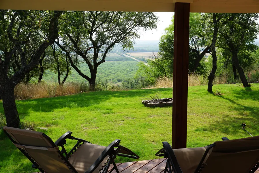 Terrain. Spectacular terrain !! This Prime ranch holding has more elevation for its size than any other weve seen. 160 feet of elevation change ! Stunning views of the peaceful Deep Creek Valley to the east. And entirely different 10 mile views of hills and valley to the south. You can actually watch both the sunrise and sunset from your own porch! The hilltop is thickly covered in trees, primarily live oaks. Down below, there are oaks, mesquite and cedar, and good deer browse brush species. Very good game cover throughout the place.