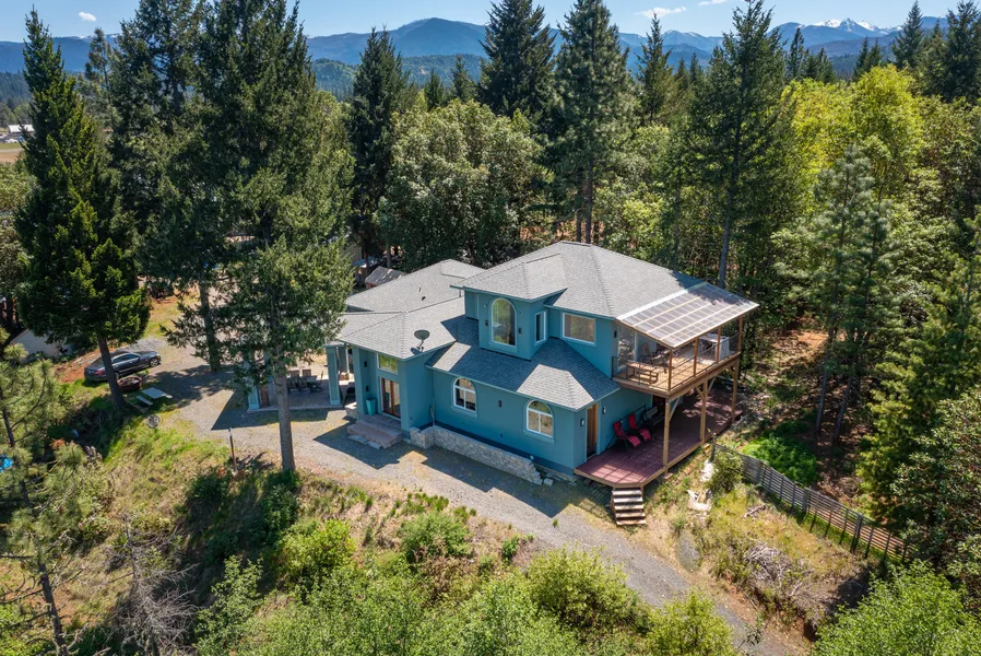 Nestled on a 15.57-acre expanse with panoramic views and bordering BLM land, this property offers versatile zoning options and it's just seconds from Illinois Valley Public Airport and close to recreational wonders like the Oregon Caves, Redwood Forest,, and Oregon coast. Trails for hiking and horseback riding lead to the coast, while the property itself boasts abundant recreational fishing spots. Enveloped by majestic trees and a unique water ecosystem, including Mendenhall Creek, with lots of wildlife, the property promises serene living. A plateau setting ensures privacy, with water and power infrastructure. Fruit trees, berries, & vegetable garden adorn the landscape, and RV hookups. The custom home features a commercial-style kitchen, luxurious master suite with balcony, and elegant finishes throughout. An adjacent 2 story 'castle'' on 50x60 slab with 4 towers, including a shop, commercial kitchen, apt., and wine cellar. Come experience this estate and it possibilities!