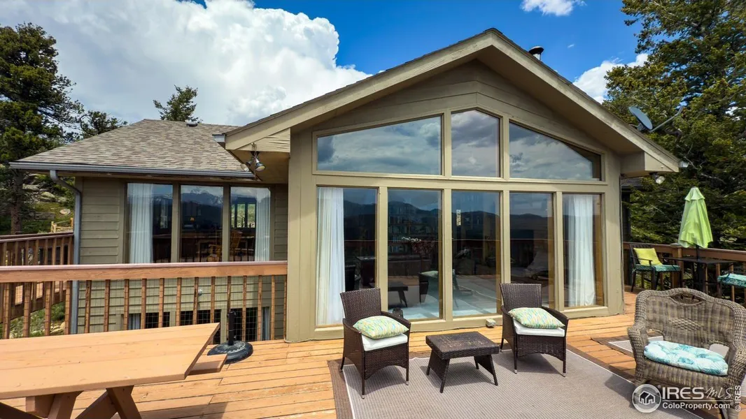Discover mountain living at its finest in this beautifully designed 3-bedroom, 3-bathroom home, offering 2,640 finished square feet of versatile space on 1.2 acres of scenic land. Just minutes from downtown Estes Park and the gateway to Rocky Mountain National Park, this tranquil retreat boasts stunning, unobstructed views of Longs Peak and effortless access to the great outdoors. Ideal for multi-generational living, entertaining, or potential rental income, the home features full kitchens on both levels and two expansive decks that provide front-row seats to daily wildlife sightings-including elk, deer, turkeys, and marmots. The main level welcomes you with a light-filled open floor plan, vaulted ceilings, and large picture windows that frame the surrounding natural beauty. A cozy fireplace anchors the living space, while the adjacent kitchen and dining area offer ample cabinetry and direct access to a spacious 45' x 12' deck which is perfect for outdoor dining, entertaining, or simply soaking in the mountain views. The primary bedroom and full bath are also conveniently located on this level. Downstairs, the fully finished lower level includes two additional bedrooms, a full bathroom, a large family or recreation room, and a second well-equipped kitchen. Step outside to a second deck with peaceful forest views, adding even more space to relax and enjoy the serenity of the setting. This is a rare opportunity to own a private, well-maintained mountain home that truly embodies the Colorado lifestyle. Don't miss your chance to make this peaceful retreat your own.