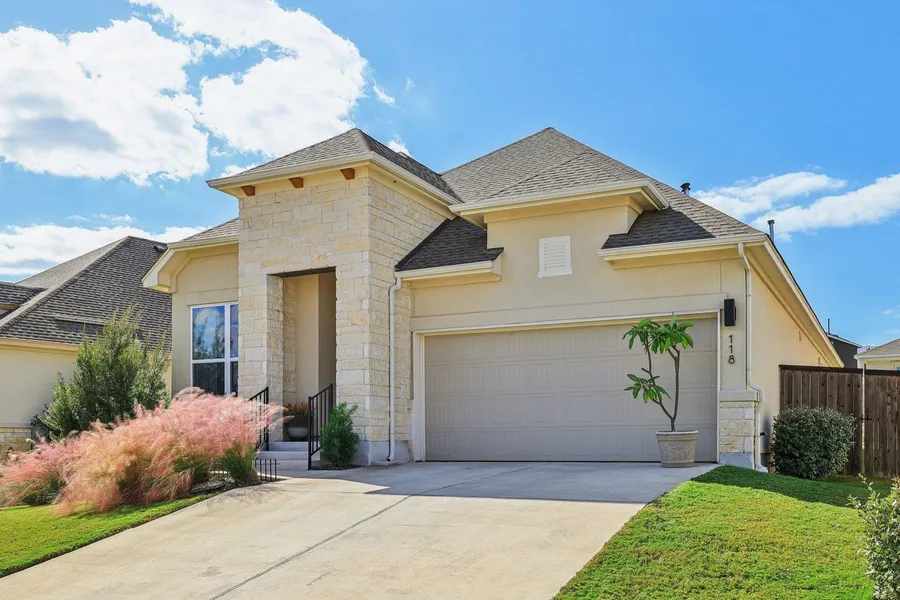 A wonderful home at a wonderful price! Imagine yourself settling into this lovingly cared-for home in The Colony at Bandera Pass. This David Weekley EnergySaver(TM) delight shines for all the right reasons. An elegant entryway leads into an open living area with oversized windows, quartz countertops, stylish kitchen touches, stainless steel appliances, and an extended covered patio overlooking the sweetest backyard - shade sails included! Lush landscaping greets you up front, with youthful trees growing happily in the back. French doors welcome you into the office, where a picture window keeps the space bright and just right. The owners' retreat feels truly regal, offering a roomy bedroom framed in natural light from big windows with custom blinds. The bathroom has double vanities, a spacious walk-in shower, and a generous closet ready for every season. Energy-efficient, thoughtfully designed, and backed by warranty, this one is an easy yes. 118 Cibolo Creek Loop is located close to the newest amenity center, The Lakehouse, where you'll enjoy a community pool, fitness room, indoor event space, and outdoor stage. Plus, nearby is a disc golf course, a pickleball court, a playground, and a network of trails that weave throughout the community.