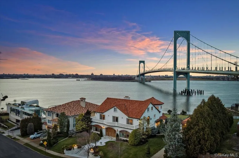 Situated on a serene half-acre waterfront lot, this magnificent 6,500-square-foot residence showcases exceptional craftsmanship and luxury. Built with durable concrete and block construction, the home features stunning ENJO Architectural Millwork throughout, beautifully complemented by rich Kentucky Oak and Carrara marble floors. Designed for both comfort and sophistication, the home boasts 15 thoughtfully curated rooms, including a gourmet eat-in kitchen with a center island, a formal dining room, a formal living room, a den, a sunken sitting room, an office, and seven bedrooms-four of which are en-suite-along with a total of nine bathrooms. The third floor has separate living quarters which may be accessed through a private staircase. Outside, enjoy 128 feet of breathtaking waterfront views in a tranquil setting. A private driveway leads to a spacious six-car garage, adding to the home's convenience and exclusivity. If you prefer boating, park your boat at a nearby slip.