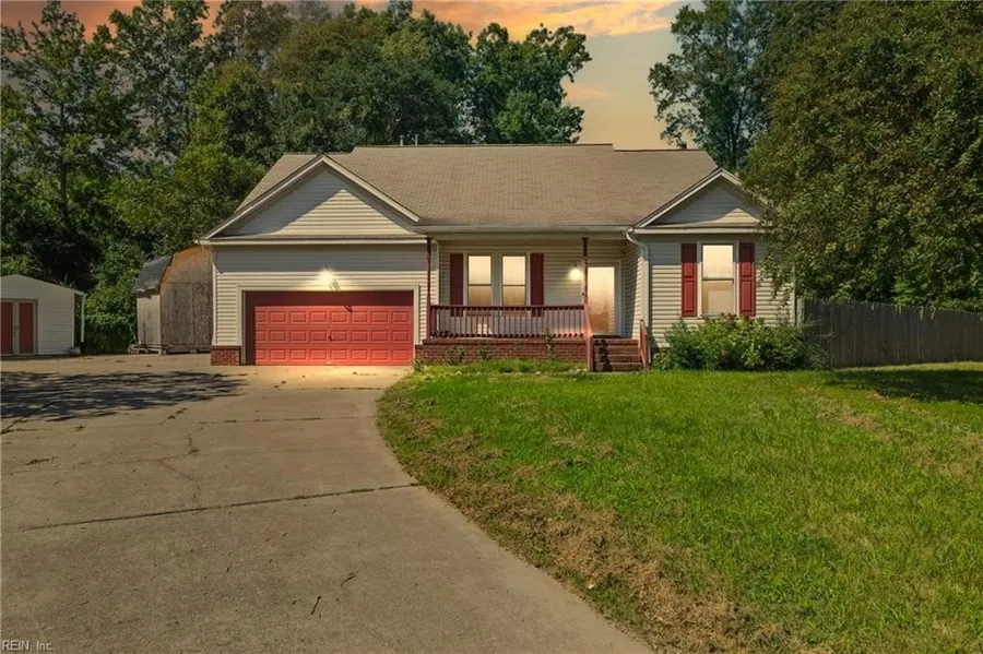 Welcoming front porch and long, extended driveway—perfect for extra parking or even a boat or RV—introduce this spacious custom-built three-bedroom home. Nestled on a wooded lot at the end of a quiet cul-de-sac, it’s conveniently close to shopping, schools, and amenities. Inside, the open and airy floor plan flows seamlessly with polished oak hardwood floors throughout. The chef-inspired kitchen boasts marble countertops, stainless steel appliances, and custom cabinetry. Two adjoining living areas provide versatile space for entertaining or relaxed weekends.