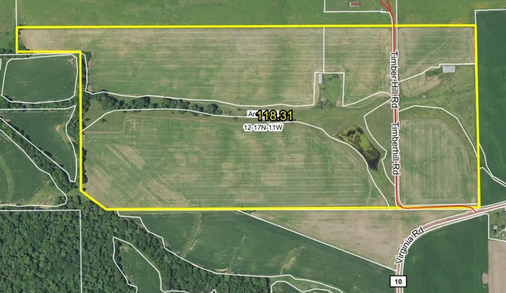 This is a rare find in South Central Cass County just west of Virginia, Illinois along the Virginia Blacktop. This 118.31 acre parcel includes 90.52 acres of tillable farmland that have been heavily improved. Over 30 basins and 9,000 feet of 6-inch tile has been installed in the last several years. Soil tests from the fall of 2017 show a well-cared for farm with averages of 6.4 PH, 48 P and 326 K. The last four corn crops have a yield average of 202; 2017 beans yielded 76.1. The farm is planted to beans in 2019.