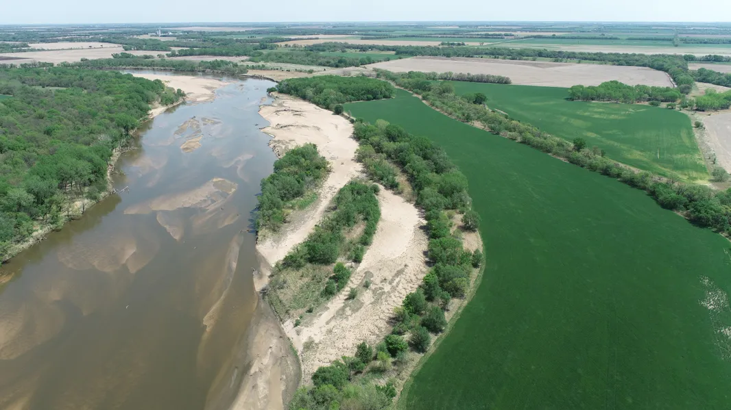 DESCRIPTION: 118.5 +/- acres with 104.4 acres of farmland and 82.4 acres of cropland along the Arkansas River. There is approximately 60 acres of wheat presently. The Arkansas River flooded in the summer of 2019 and deposited about 20 acres of sand on the north side of the property taking that portion out of crop production. Presently switch grass is growing on that acreage. Property has a mixture of productive cropland and heavy timber. Excellent deer, turkey, pheasant, quail, and waterfowl hunting. Here is the opportunity to purchase a piece of Arkansas River frontage with a big sand bar to use for hunting and recreational purposes.