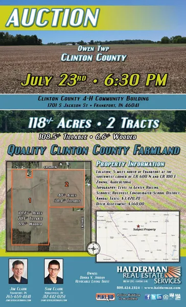 Auction Location: Clinton County 4-H Community Building: 1701 S. Jackson Street, Frankfort, IN 46041