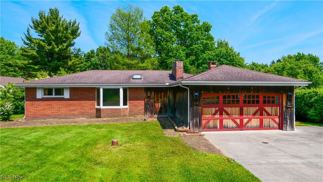 Welcome to this charming brick and cedar-sided ranch nestled on a picturesque 1.14-acre lot. Surrounded by mature trees and partially wooded for added privacy, this serene setting offers the perfect blend of nature and comfort. Three spacious bedrooms, a full bath and additional shower in the lower level are all thoughtfully laid out for easy living. The heart of the home is the oversized kitchen featuring a cozy wood-burning fireplace, perfect for gathering with loved ones or enjoying a quiet morning with coffee. The large living room, also adorned with a beautiful wood-burning fireplace, invites relaxation and conversation. Enjoy the convenience of a 2-car attached garage, a full partially finished basement with endless potential, and a concrete drive that adds both function and curb appeal. Step out back to your peaceful deck, where you can entertain, grill, or simply enjoy the sights and sounds of nature. Located in a high demand area that combines tranquility with easy access to everyday essentials, outdoor recreation and highways, this home offers the best of both worlds—comfort and convenience. Bring your personal flair and vision to refresh this rustic retreat and truly make it your own. Homes like this—with space, privacy, and timeless character—are rare. Schedule your private showing today!