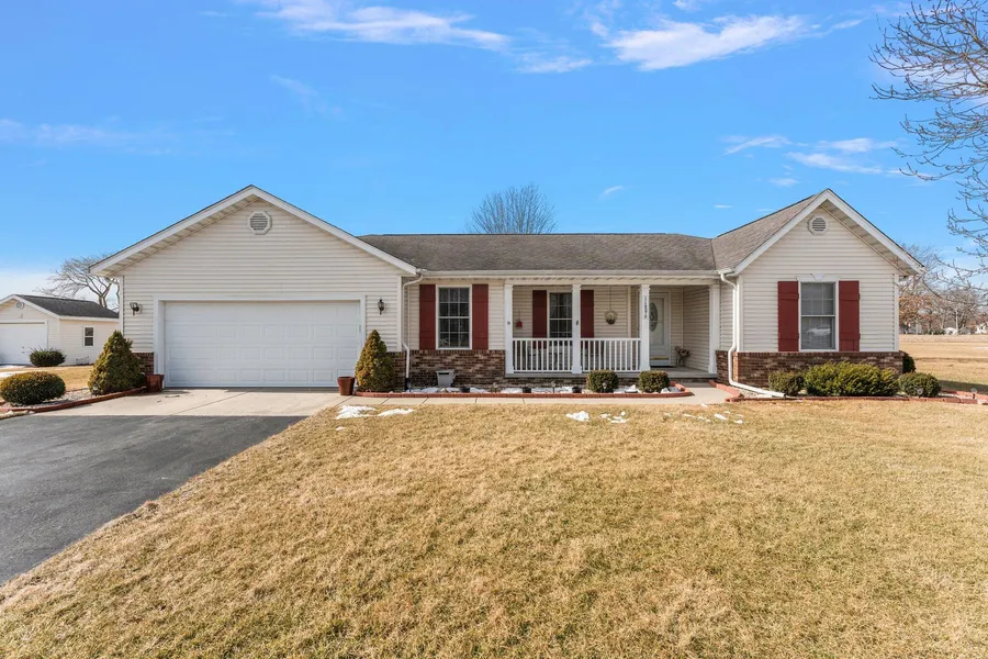 Discover the perfect blend of country charm and modern convenience with this stunning ranch home situated on a spacious 1-acre lot in the highly desirable Brookwood subdivision, just minutes from town!As you approach, you'll be greeted by a welcoming front porch that opens into a bright foyer. The open-concept layout creates an airy and inviting atmosphere, featuring a spacious dining room and a living room with vaulted ceilings and abundant natural light. The expansive eat-in kitchen is a true highlight, complete with a sliding glass door that leads to the deck--ideal for enjoying peaceful country views. The large primary bedroom offers a walk-in closet and an en-suite bathroom for your ultimate comfort and convenience. On the opposite side of the home, you'll find two additional well-sized bedrooms, a full bath, and two hall closets for extra storage. The laundry room with utility sink is located just off the garage, making everyday chores a breeze. Plus, the spacious 2-car garage and additional shed provide ample space for all your storage needs. This home truly offers the best of both worlds--country living with all the modern amenities. Don't miss out on this rare opportunity!