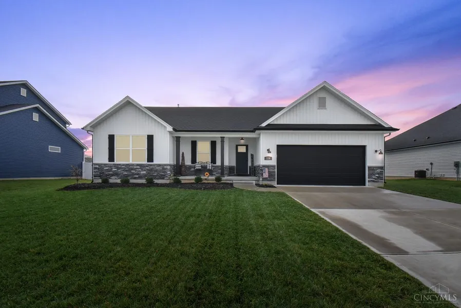 This well-maintained Associate Construction Home is built with stone wainscoting & Trendy Board-N-Batten White Vinyl Siding. Just a few years old, the home offers approximately 2,300 sq ft of living space & sits on a sizable lot in Timber Ridge. The property features 4 bedrooms & 3 full baths providing ample space for a variety of living arrangements. Finished basement offers 1 of the 4 bedrooms with an egress window & Full bathroom! Basement will also include a 10 year builder transferable warranty to next owners! Open Kitchen includes granite counters, shaker cabinets, subway tile backsplash, & a kitchen Island. Great Room has cathedral ceilings & plenty of natural light! The 10x12 covered patio extends the living area outdoors, creating a comfortable & inviting space for relaxation or entertaining. The brand new shed provides convenient storage options, allowing for organized & efficient use of the outdoor space. Don't miss out on this dream home! Agent is related to seller.
