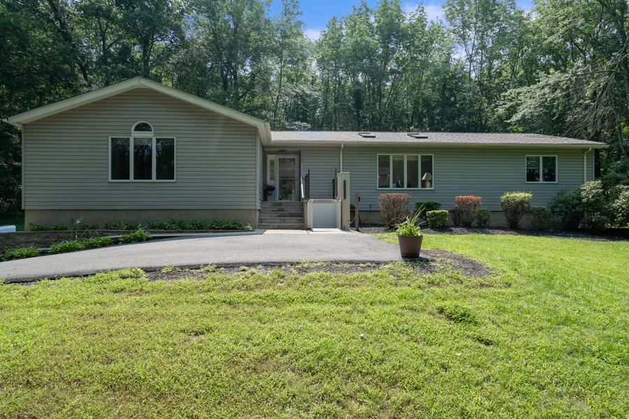 Custom 4 BR, 2.1 Bath Ranch Home on Private 2 Acres! 2159 sq ft w/ features incl: New Roof, 3 Car Built in Garage, Generator Hook Up, Central Vac, & High Ceilings. Main level offers spacious LR w/ vaulted ceiling & skylights. Eat In Kitchen w/ SS appliances, wall oven, pantry & sliders to deck. Formal DR also has sliders to deck letting in lots of natural light! Master BR suite boasts large WIC & en suite full bath. 3 additional BRs plus a main bath & powder room complete this level. Finished lower level w/ spacious family room, office/den, & finished laundry room w/ separate entrance. Open floor plan - perfect for entertaining! Situated on a private 2 acre open & wooded lot! Porch lift equipment can be included or removed if buyer desires. Photos coming soon!