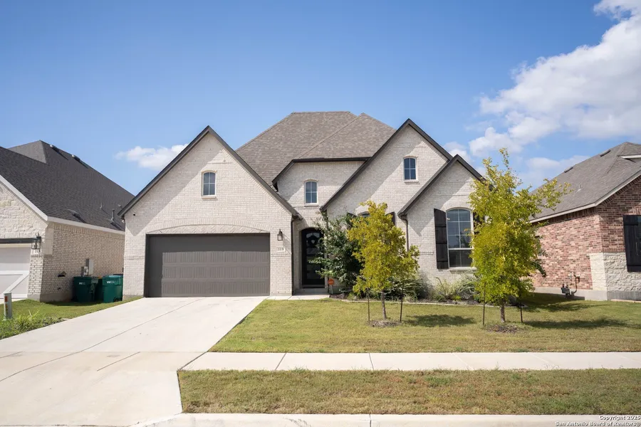 Welcome to this stunning home in the highly sought-after community of Boerne, where modern elegance meets everyday comfort. From the stone facade and inviting curb appeal to the open-concept layout inside, every detail of this residence is designed to impress. Step into a bright study with French doors, perfect for working from home, and continue into the expansive living room featuring a striking fireplace, high ceilings, and abundant natural light. The gourmet kitchen is a showstopper with custom cabinetry, a massive island with breakfast bar seating, stainless steel appliances, and a sleek gas cooktop-ideal for entertaining and family gatherings. A spacious second living area adds even more versatility, offering the perfect spot for a game room, media space, or kids' retreat. Retreat to the luxurious primary suite, complete with bay windows, a spa-like bath with soaking tub, oversized shower, and a generous walk-in closet. Secondary bedrooms are well-appointed, offering comfort and privacy for guests or family. Outdoors, enjoy a large fenced yard and covered patio, perfect for relaxing evenings or weekend BBQs. With its ideal location near top-rated schools, shopping, and dining, this home truly offers the best of Boerne living.