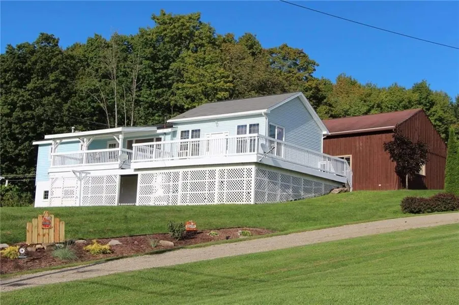 Come see what the burg has to offer you! Just a few minutes away from schools, local shops, and restaurants sits a 3 bedroom home on 1.4 acres of land. Open concept kitchen, dining, and living room that has been built with an array of beautiful wood for that rustic and homey feel. Raised decks that you can enter from both the living and dining room. 2 bedrooms and 1 bath on the first floor. Basement level has one finished bedroom with the space to finish off another room to suit your needs. Walk out basement to patio. The over-sized garage has 14 ft overhead door/ceilings thats perfect for your workshop! Newer Wood stove that heats the garage as well as supplemental heat for the house to help keep utility costs down! Most hardwood furnishings are included with the home!