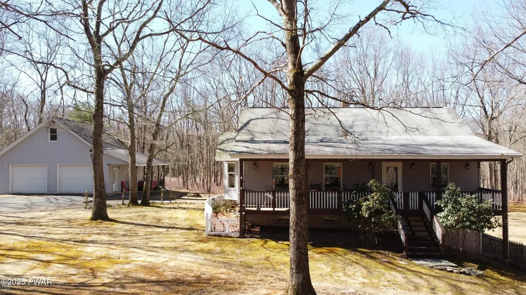 Breathe that fresh mountain air! Enjoy ultimate freedom with no HOA on 7 stunning acres right in the heart of Greeley! With minimal steps to entry, this meticulously maintained home offers a large, recently updated, bright and airy kitchen, complete with a dining area featuring a bay window which seamlessly flows into the vaulted living room. Unwind and repose in the deluxe ensuite primary bedroom complete with generous closet space. Downstairs features a very large 3rd bedroom, just off of a secondary living area/ recreation room with walkout access. With high speed cable internet available, make ''work at home'' a daily pleasure with a superb office space setup. Let your imagination run wild with an additional bonus room which is the ideal size for a hobby room, cardio/ fitness space or even your very own studio! Built with practicality in mind, there are multiple ways to heat this home including a coal stove, pellet stove, or baseboards. Enjoy the convenience of a propane on demand hot water system, and peace of mind with a hookup for a full house generator. But wait - there's more! An oversized 2 car garage with full height loft is perfect for those who need ample storage for boats, vehicles, atvs and all of the wonderful toys. Located in the Wallenpaupack area school district, just a few miles to the BIG lake, minutes to skiing golfing and resorts and directly between two of PA's most adorable towns (Hawley and Milford) makes this home a must-see!
