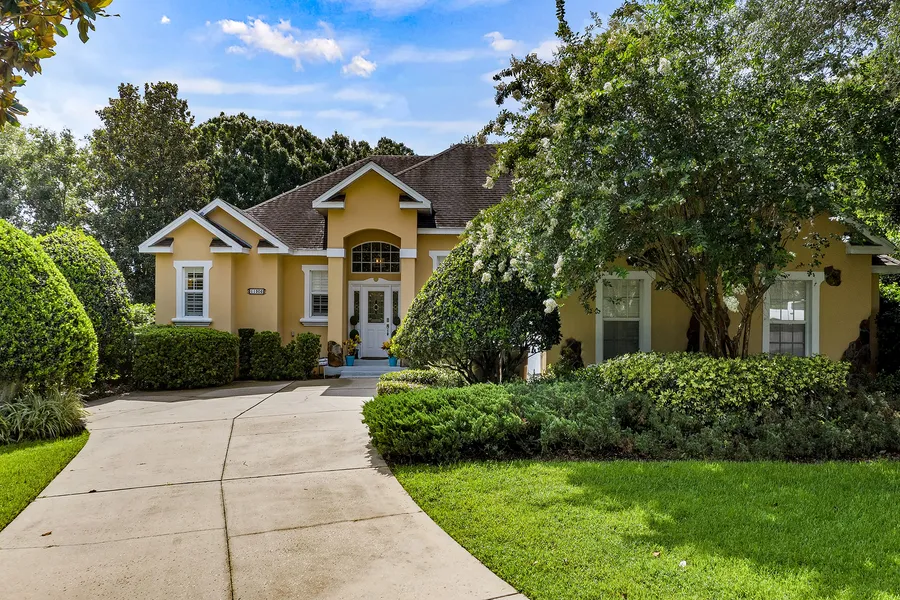 Gorgeous four-bedroom, three-bath home plus an office in a gated community on half an acre. This home is well priced and move-in ready. The welcoming beveled glass front doors lead you into a large foyer and your new home. The family room is a perfect size; look at the huge furniture that fits in here. The adjacent kitchen is situated perfectly to take advantage of the view out to the pool, and you can stay connected to family or guests both inside and out. Lots of granite countertops in the kitchen, a beautiful stacked stone backsplash and 42-inch custom cabinetry with crown molding and some with glass fronts. The white cabinets are set perfectly against the granite countertops and can accommodate any pop of color you want to make this your own. The formal dining room has transformed into a space that can be just as formal as it can be casual. Bench seating against the beadboard accented wall, and a large table can be situated under the cool light fixture. Enjoy meals overlooking the pool or bring the BBQ you made on your grill from the deck straight in. Need a home office? A perfectly designed organizational wall of cabinets, shelving and a desk area are all situated behind a French door, plus you have extra seating space. The master suite is very large, as the master bedroom has a sitting area overlooking the rear yard and pool area. Custom ceiling accent gives the room some dimension. There are two master closets; both have closet systems installed. Plenty of drawers, hanging space, plus shoe racks. Master bath has a nice soaking garden tub, separate glassed-in shower, plus dual vanities. A triple split bedroom plan means there is a rear bedroom that's separate from any other bedrooms, plus it has a full bath that serves as the pool bath. Perfect location for extended family or guests. Bedrooms two and three are nicely sized and have ample closet storage. The laundry room is equipped with cabinetry and a large sink. Side-entry oversized two-car garage has plenty of room for vehicles and extra storage. The home also has tons of upgrades, crown molding almost everywhere, oversized baseboards and plantation shutters on all the windows that let in natural light. AC installed in 2020. Great outdoor living space, covered lanai and open deck area around the pool for sun. The pool is surrounded by a nice privacy hedge, and there is a fenced rear yard area with a wrought-iron-style aluminum fence. The landscaping is perfection, St. Augustine sod with irrigation system, great shrubs and plants, all healthy but easy to maintain. Large shade trees also make this home feel a bit secluded on this cul-de-sac lot. Walk out to the community nature walk and get picked up at the end of the dock over Lake Minnehaha. This smaller gated community is conveniently located just off Lakeshore Drive and Hammock Ridge Road for easy access to Highways 50 and 27 but tucked away behind a brick wall and tons of trees. Central Florida living with easy access to Disney and attractions within 40 minutes. Shopping and restaurants within five minutes. Come see this amazing home with an appointment today.