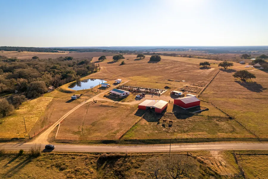 This unique Caldwell County, Texas property includes 2 tracts of land, a beautifully remodeled home, a metal shop, a horse barn, and two separate cottages. The cottages are on separate utilities and would make a great income stream. Years of hard work and attention to detail are shown throughout this property. The pastures have been cleared, fenced, and cross fenced with large oaks scattered about. Grasses include coastal, Tifton and have been chemical-free since 2013. A pond sits next to the cottages along with a pad for RV or boat parking. The 2,000 sq ft metal shop includes two roll-up doors and an interior 12x40 enclosed office/storage space. The horse barn measures 40' x 50' complete with water and electrical lighting. Two additional 12' x 24' metal buildings provide storage and chicken house. Sitting behind the main house, you can enjoy an approximate 7,000 sq ft garden complete with raised beds and 25-year weed guard ground cloth. The 3/1 remodeled ranch house with a metal roof has all new lowE double-paned windows, a custom cedar walk-in closet and a large pantry with built-in shelving and so much more. Bring your livestock, horses, farm animals, etc. AG EXEMPT. This property has amazing views of the surrounding countryside along with great sunsets and sunrises. Easy commute to Circuit of The Americas, ABIA, Lockhart, Old Settlers Music Festival, and TESLA.