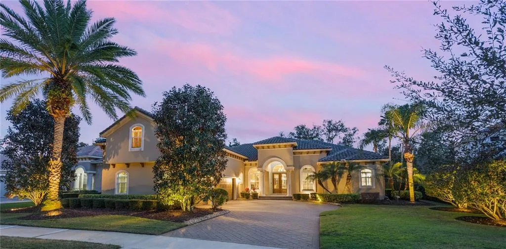 Under contract-accepting backup offers. Wonderful opportunity to own this home with open floor plan on a private, wooded conservation. Five bedrooms or four bedrooms plus bonus room, five bathrooms, plus an office and bonus room, features 11' ceilings, recess lighting, columns, arches and niches. The professional gourmet kitchen features granite countertop, oversized island with bar and glass cabinets, stainless steel appliances, five burner gas range with double oven, designer vented range hood, tile backsplash, large walk-in pantry, and granite counter wet bar area with wine cooler. The family room has 90-degree sliding doors that lead to a screened Lanai equipped with a summer kitchen, a pool, a spa with a waterfall, and custom lighting. The downstairs office has wood floors and glass doors, the family room has a built-in media center, the formal living room features a cozy fireplace with marble inlay and remote control, and the primary bathroom has a Jacuzzi tub, designer tile shower, center island with storage, granite countertops, dual closets with upgraded wood shelving, and a bonus room upstairs designed for entertainment purposes. Several improvements have been made to the property, including the installation of double pane windows in 2016, two air conditioning units in 2016 and 2020, new roof in 2023, recently replaced pool pumps, fresh interior painting in 2024, and the installation of two tankless water heaters in 2025, one for the primary bathroom only and the second for the entire house. Additionally, the summer kitchen was updated with upgraded granite, new carpet was laid in the guest bedroom and staircase to the bonus room in 2022, pool was re-screened in 2022, and the exterior was painted in 2021. The "Reserve at Belmere" is a conveniently located Windermere guarded-gated community with clubhouse, fitness center, basketball, tennis, and sand volleyball court, playground and community gazebo where you can enjoy breathtaking sunsets.
