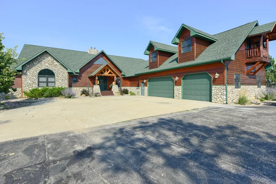 Beautiful, custom home showcasing log and stone accents. This home will invite you and your guests to come in and get away from it all with over 7400 +/- sqft of living space, stunning views from the wrap around deck and plenty of garage/parking space for all of your toys! Inside offers 4 bedrooms, 4 baths, a bonus room above the garage, a large floor to ceiling fireplace, vaulted ceilings, a dream kitchen, a large wine cellar and lots of storage space! This home offers beauty on both levels. The kitchen has granite counter tops, a large center island with a vegetable sink, a double oven and a Viking 6 burner gas stove top. There are two bedrooms on the main and 2 in the basement. The basement boasts a large family room, a wet bar with a hand cut log counter top and endless storage. The amenities are endless!