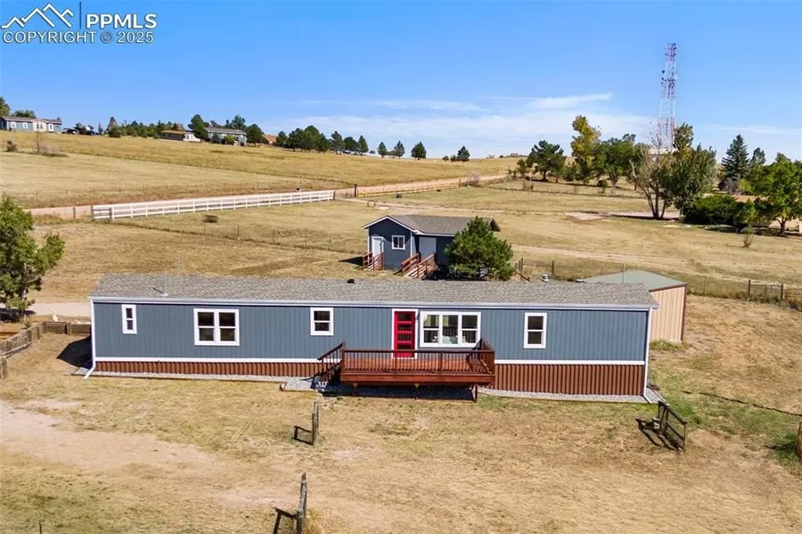 This fully renovated home is situated on over 5 acres, yet just 5 minutes from the town of Falcon. No detail was overlooked, you have to see this home in person to truly appreciate it! Custom features through-out including cedar trim, window casings, wainscoting and shelving. Hand-crafted barn door in primary bedroom welcomes you into a truly magnificent, spa-like private bathroom. With a brand new walk-in shower, luxurious soaking tub and two separate vanity sinks, you will never want to leave this oasis of a bath. Open concept kitchen, dining and living room is brand new from top to bottom. New stainless steel appliances including 5 burner gas range/oven and hood vent that is both sleek and functional. Gorgeous Caesarstone counters, brand new cabinetry (all soft close of course) and tasteful tile backsplash. New plumbing, luxury vinyl flooring, lighting, doors, outlets, switches and fixtures. Fully fenced 5 acre lot with multiple out buildings, water spigots and power sources provide endless possibilities. Brand new wood deck is the perfect place to soak up the full view of the front range and Pikes Peak. Located on a dead-end dirt road, this is the perfect property to enjoy the quiet country life while having all the conviences in Falcon literally right down the road. This is a unique property that checks all the boxes.