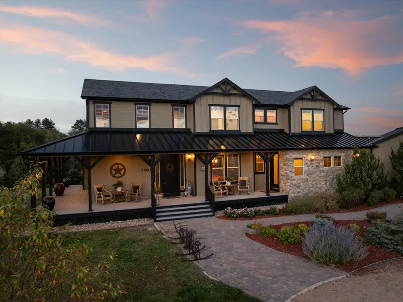 Over 125 years of love and laughter are woven into this landmark 4000 SF 6 bdrm/3 bath custom home and school house on 80 acres. Built to accommodate a family of 9, this legacy ranch includes multiple barns, historic grain silo, personal picnic area and pond, irrigation cistern and endless acres to explore. More than 400 trees, planted by WPA when property was first homesteaded, now create a natural forest bufferoffering privacy, shade, and a peaceful setting for picnics and fireside gatherings near the secluded pond. The memories made here are preserved in a lovingly curated scrapbook for your perusal. The homes interior honors its western roots, blending rustic charm with modern comforts. Youll find a stamped tin ceiling in the kitchen, dark wood cabinetry, a river rock two-story fireplace, and arched passagewaysall paying homage to the Old West. The chef's kitchen can easily cater a crowd including double dishwashers, double sinks, double ovens,extensive prep area and expansive island all with granite counters. Main floor primary suite offers a cozy 2-sided fireplace, sitting area and access to the secluded deck. Each bedroom is uniquely designed with themes reflecting the western lifestyledressage, rodeo, and ranchingand includes thoughtful custom touches like horse stall closet doors. Upstairs Jack and Jill bath has 4 sinks and two tub/showers. The other hall bath has three sinks and separate tub/shower area for efficient shared use. The 600 SF school house with its own bath and drinking fountain offers potential as a guest cottage or second dwelling unit. Several concrete block barns originally used for a dairy operation remain with new 2023 roofs, storage rooms, grain loft, tack rooms and several run in sheds for livestock. The large grain silo is a regional landmark and is in excellent condition. The property is completely fenced and cross fenced. There is a new 75-gal water heater, new 2023 roofs (all outbuildings), and fresh exterior paint.