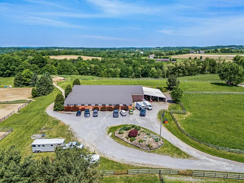 A premier equestrian facility with a 3-bedroom, 2-bath ranch home, complete with a finished basement office and ground-level access through beautiful French doors. This meticulously maintained property boasts a 25-stall barn, with each 10'x12' stall featuring custom-made steel mesh doors. Recent upgrades include 10 new windows with aluminum bars, and tongue-and-groove wood finishing in the barn office and tack room. The equestrian amenities are exceptional, including a 60'x120' indoor arena, a 100'x200' outdoor sand arena, a large 60'x80' three-bay garage perfect for hay, jump, and truck/trailer storage. The barn includes a feed room, hot/cold wash stall, and ample parking with space for a semi to turn. The property is set up for convenience and care with two pastures, a dry lot with electric fencing, five private paddocks, and space for boarding, training, and even horse transport services. Fully boarded facility. Located 5 miles from Zelienople & Harmony/ 7 miles from Cranberry Twp