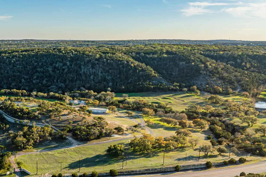 The terrain of the property features gentle undulations, with several optimal building sites. Numerous level areas across the property provide ideal spaces for equestrian activities. The ranch features of both sides of Bear Creek frontage that runs along the western boundary and has a dam at the southwest corner to facilitate access to the opposite bank. Several various hardwoods can be found across the ranch including live oak, cedar elm, cottonwood, and red oak. The property's scenic beauty includes captivating cliff formations, giving it the illusion of a larger estate.