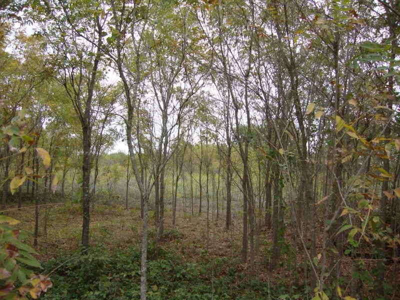 Heavily wooded, mostly brush, with mature pecan and elm trees.
