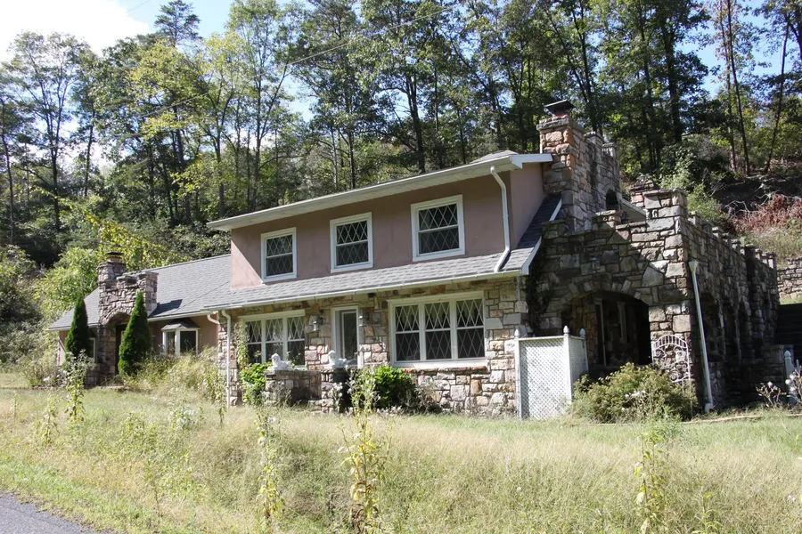 Unique stone home on 12 acres, previously a B & B, private and on a large wooded lot. 5 bedrooms, marble floors in the main area, look-out tower and a guest house with living area and full bath. 2 car garage. Surrounded by farms and the quaint community of Blairs Mills. The acreage has 5 parcels. Take a light as electricity is out.