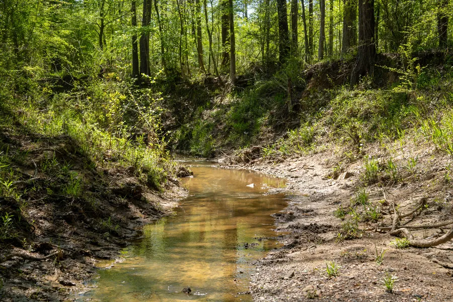 A homesite clearing and mulched trails have been developed on the property giving a buyer the chance to toss up some stands or consider construction of a homestead or weekend cabin. The area is loaded with game including hog and deer attracted by an abundance of hardwoods and consistent access to fresh water Provided by the western boundary of Village Creek. The flora of the tract contains some large hardwoods and young tall pines with a healthy bit of underbrush that has been mulched back for access via trails leading to the southern most point of the woods.