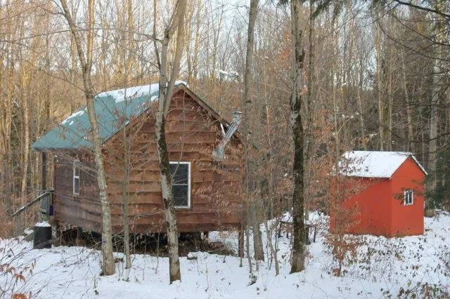 Semi- finished camp with old timer woodstove, kitchen area, living room, sleeping loft and unfinished bathroom and hydrant well. Storage shed for storing tools and camp gear.