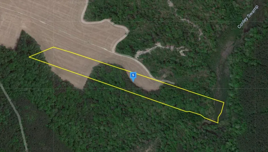 Typically legal descriptions include some sort of a reference to a plat of record. In this case, since there is no plat referenced, we have to do our best to go off what is on record. It seems to me, after reviewing the GIS, google maps, and the legal description, that the right of way road is likely now Conley Pond Road. You can always talk to locals, neighbors, etc to get a better sense of the history of the land, never hurts.