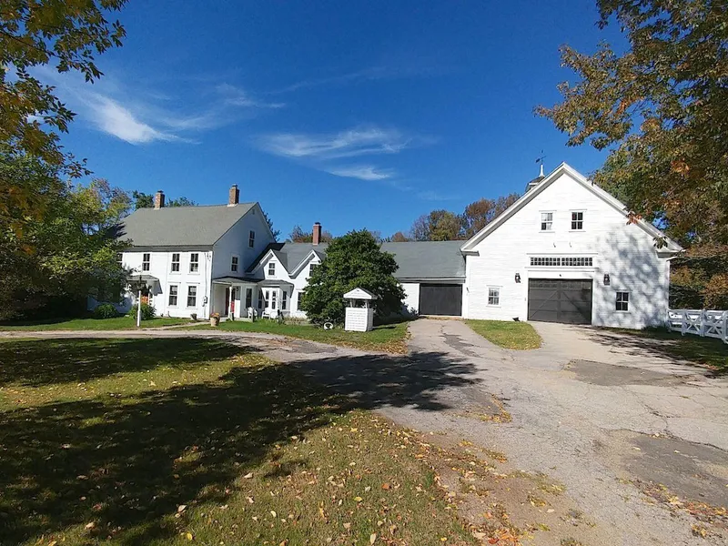 An 1800s 4BR/2BA center hall colonial, it is set off the road along a circular drive. The house retains much of its old charm with an ell connecting the house to the beautiful attached post and beam barn.