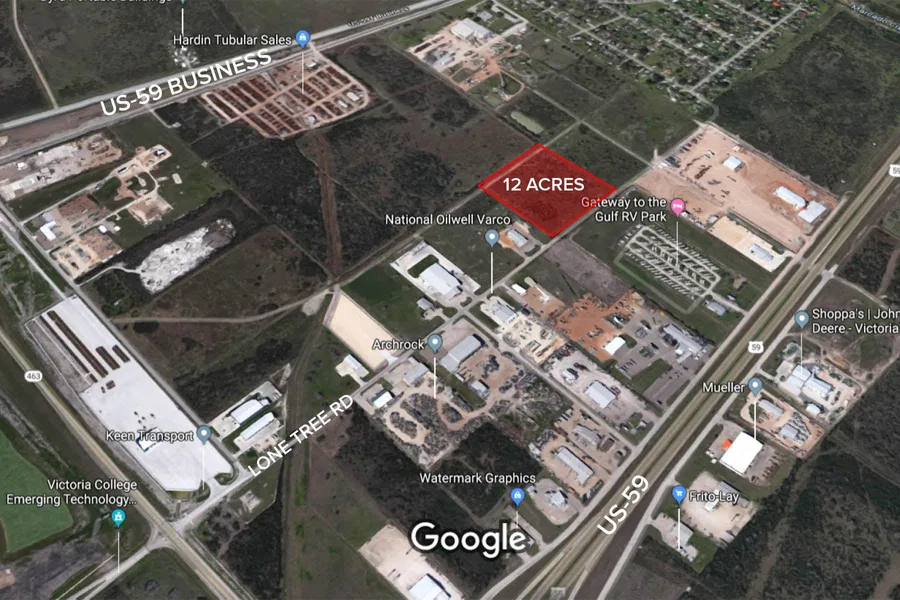 Great unimproved commercial acreage. Located off N. Lone Tree Rd. and close to Loop 463 in Victoria, Texas, the property is less than a mile from US Hwy 59/future I-69.