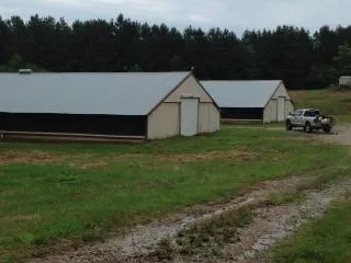 Broiler Houses: (2) 40 X 450, tunnel vent, tp, wt, (5/12), 5 OC, ms, mr, solid wood walls on north, south, and west sides, curtain on east wall but entire interior was foamed and sealed in 2010, drop ceiling with insulation reblown in 2002. Fixtures per house: (3) 18 ton feed bins with auger tube auto fill system, (8) 48 Acme fans, (1) 54 Acme fan (2006), (2) 54 fans (2012), (2) 36 Acme fans, (2) 20 stir fans (2006), 58 vent boards, (2) 1,000 propane tanks, 6 recirculating pads 80 each side (2006), 2 lines Choretime ATP feeders, 4 lines of Lubing drinkers (2012), 2 HiredHand heaters (2012), 14 L.B. White brooders (2006), Wireless paging system (2006), HiredHand alert alarm II, Rotem Platinum Plus Controler, Precision dimmer in one house, Precision dimmer in second house (2012), all necessary controls in control room.