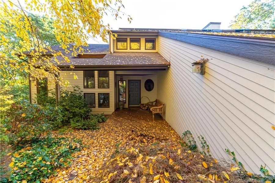 Captivating home with solar power and an incredible primary suite. Nestled on a 1.66-acre cul-de-sac lot on Applewood Common, this 4BR/3.5BA home offers classic Northeastern charm with a stunning backdrop of mature trees, gorgeous contemporary architecture, and lush landscaping. Drenched in natural sunlight through oversized windows the interior features hardwood floors, vaulted ceilings and an open floorplan linking the formal dining area to a large living room with a stone clad fireplace. The thoughtfully designed gourmet kitchen includes premium KitchenAid stainless-steel appliances, granite counters and contemporary wood cabinets. A French door refrigerator, center island, glass tile backsplash and breakfast area with wood burning stove creates a warm focus to this home. Restful days may be enjoyed in the sizeable primary bedroom with balcony access, a large walk-in closet, and an expansive en suite with soaking tub, dual sinks, skylights, and separate shower. A versatile guest suite with a private entrance is found on the lower level and contains a full kitchen with Bosch appliances, a spacious living area, European styled bathroom, and double bedroom. Brimming with entertainment-value, the outdoor space has multiple decks, a sprawling greenspace, peaceful nature views, and a luxurious hot tub which make this property feel like your own personal spa retreat! Other features: 2-car garage, laundry area, quick commuting, 10-minutes to area beaches, shops, dining and more!