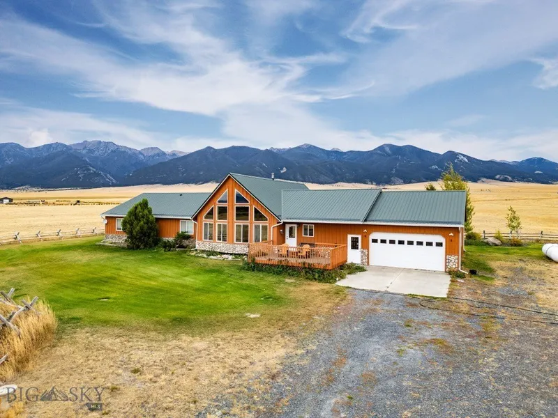 Welcome to your Montana dream property-where sweeping mountain views, open skies, and 45 acres of privacy create a lifestyle that feels worlds away yet minutes from town. This custom 3-bed, 2.5-bath home offers 2,858 sq ft of rustic elegance, blending craftsmanship, comfort, and freedom. 20-foot vaulted knotty-pine ceilings, hardwood finishes, and picture windows frame the Tobacco Root Mountains. The open-concept great room flows into a chef's kitchen with stainless steel appliances, custom cabinetry, and an island made for gatherings. The primary suite includes deck access, a spa-style bath, and a walk-in closet. Outside, enjoy partially fenced and cross-fenced land, a shop, and room for horses or hobbies. Watch sunrise and sunset from the front deck or explore nearby trails and town. Convenient to Bozeman, Butte, and Helena-this is true Montana living.