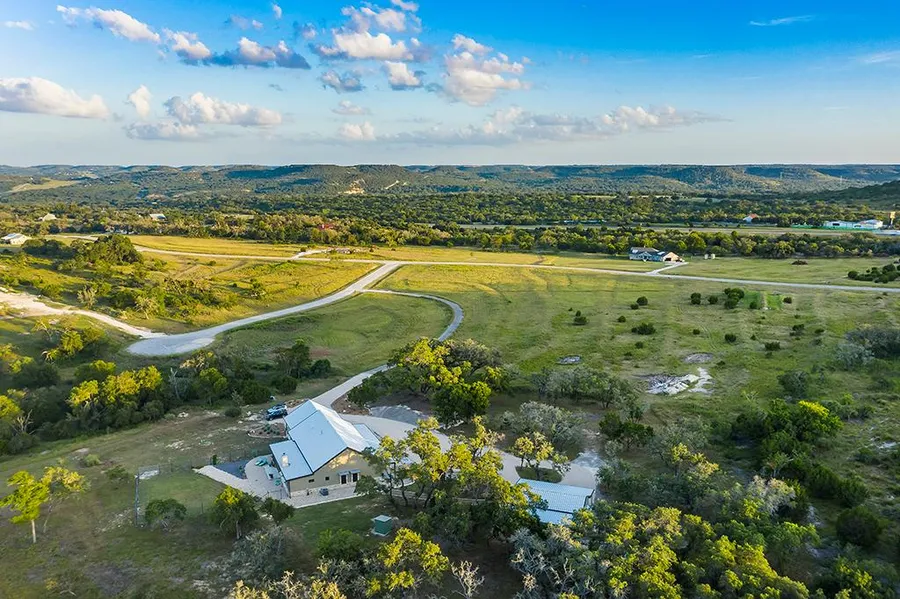 Outside you will be surrounded by rolling hills and distant views of the Texas Hill Country. Selective clearing has opened up areas for views, while also maintaining a sense of privacy around the homestead. An additional structure was built on the property to house equipment and also features an attached space perfect for an additional guest suite or a home office.