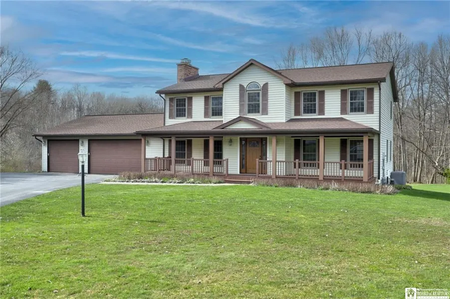 Lovely West Ellicott Colonial home on a cul-de-sac with 1.4 acres in the Southwestern School District is ready for a new owner!! Spacious covered front porch welcomes you into the foyer with 2 sets of closets. Living room to the right, opens to the formal dining room. Large family room to the left of the foyer has brick WBFP & insert, built-ins and wet bar. Kitchen, with all appliances, has large island and eat in area. Sliders lead to the huge deck overlooking the private 1.4 acres lot. Also on the first floor is a half bath and laundry room at the entry to the 3 car garage. Upstairs are four nice sized bedrooms with lots of closet space and full bath.. Primary bedroom features gas fireplace, walk-in closet, and newly renovated bath & vanity area. The full basement has new 72 gallon hot water tank, 200 amp electric service and panel for the full house gas generator. Creek runs along the back of the private yard. This quality built home has been well loved and beautifully maintained!! Delayed negotiations...any offers will be reviewed on Monday, April 15,2024 at 5:00 pm