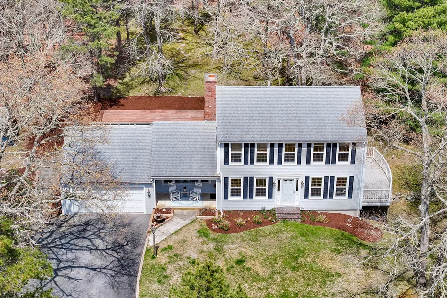 Tranquil retreat nestled down a secluded lane in the South Dennis Historic District, this stately 3-bedroom Colonial stands proudly on 1.33 acres bordering Audubon lands. The first floor features a family room with beamed cathedral ceilings and an impressive fireplace leading to a large deck offering total serenity. The living room opens to another secluded deck, and the remaining space on the first floor includes a quaint country kitchen, dining room, a home office/den and a half bath with laundry facilities. The home's character is enhanced by wide pine board flooring throughout. On the second floor, the generous primary bedroom features two walk-in closets and a private en suite bathroom. Two more guest bedrooms and a full bathroom complete the upstairs. Additional amenities include a full walkout basement opening to a patio, a welcoming farmer's porch and a 2-car garage with overhead storage. Some updates may be needed, but the home is an outstanding find conveniently located just minutes from Bass River, local beaches, golf and bike path. This is a hidden gem!